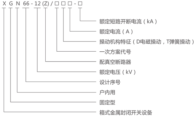 XGN66-12(Z箱型固定式金属交流封闭开关设备(简称开关柜),系户内三相交流50Hz,额定电压为3.6~12kV,额定电流630A~3150A的单母线分段系统的成套装置,作为接受和分配电能之用,并对电路进行控制、保护和监测。可满足各种类型发电厂、变电站(开闭所)及工矿企业使用要求。