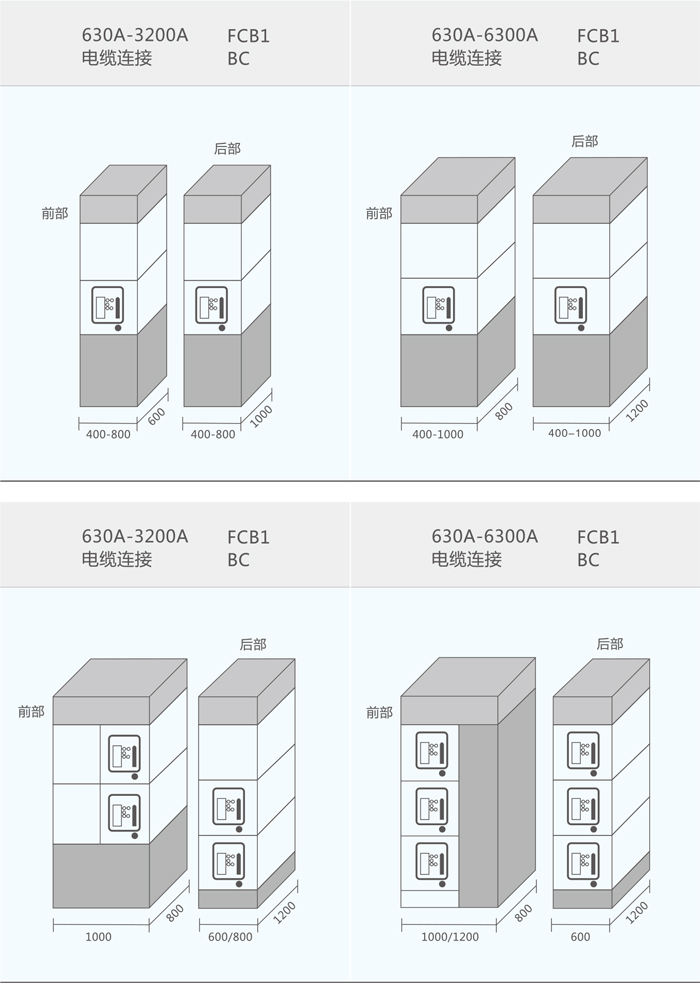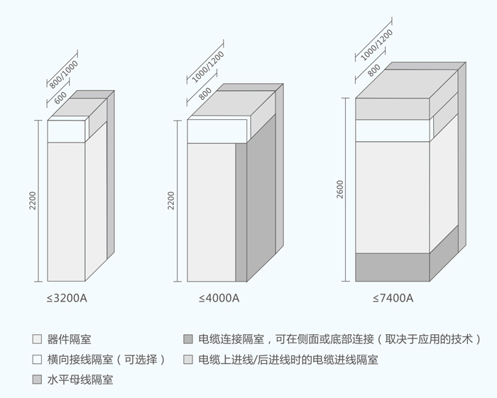 4.电缆连接隔室可选400mm宽(前部)或600mm宽(后部)