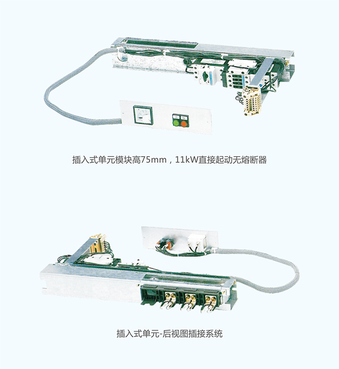 装有电动机回路及电缆馈电回路的插入式开关柜是抽出式设计的较经济的替代物。通过在进线侧的插头,使得单元具有快速的可更换性,并无需开关柜整柜断电。