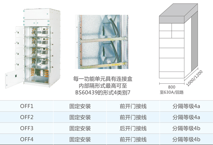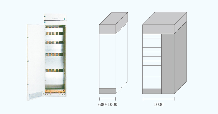 3.可根据要求来分隔各功能室(符合IEC60439-1规定的形式1至形式4)器件隔室的深度尺寸大