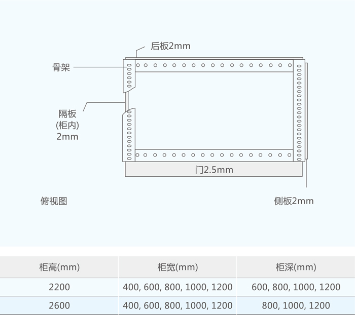 骨架是开关柜的承重结构,它是由牢固的钢板型材相互连接而构成。