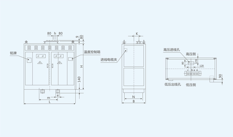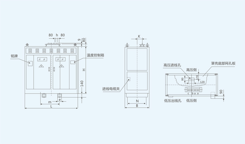 采用美国UL认可的NOMEX绝缘系统生产的非包封线圈三相干式电力变压器,具有安全、可靠、节能、防火、防爆、维护简单等优点。其设计先进、结构合理、外形美观。主要性能指标均优于国内标准,如局放水平、空载损耗、负载损耗、噪声以及能适应高湿度环境使用等,可安装在靠近湖、海、河边污秽潮湿的环境及防火要求高,负荷较大的地区,适用于高层建筑、机场、车站、码头、地铁、医院、电厂、冶金行业、购物中心、居民密集区以及石油化工、核电站、核潜艇等场所。