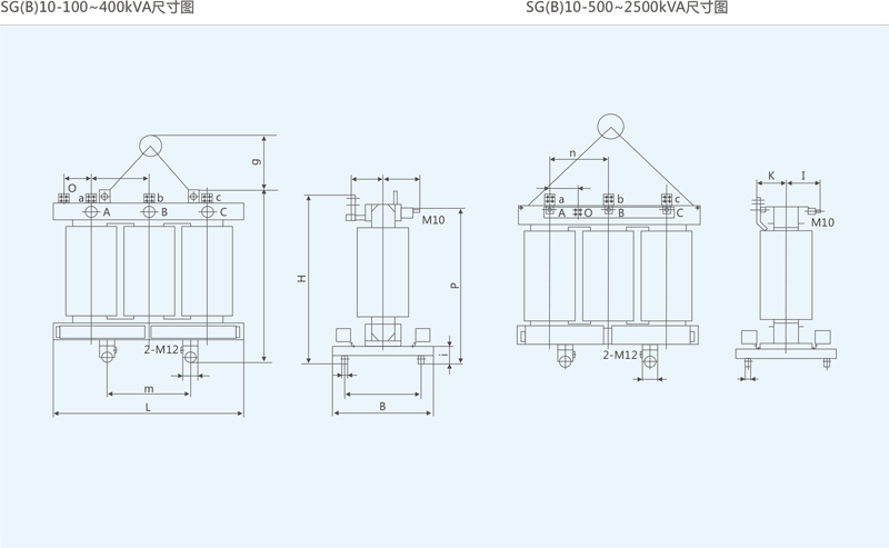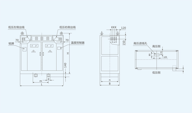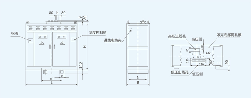 SG(B)10型非包封线圈电力变压器标准排侧出线外形图