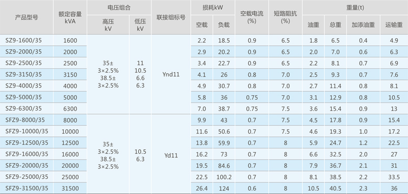 35kV三相有载调压电力变压器SZ9、SFZ9系列