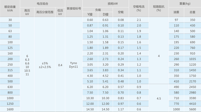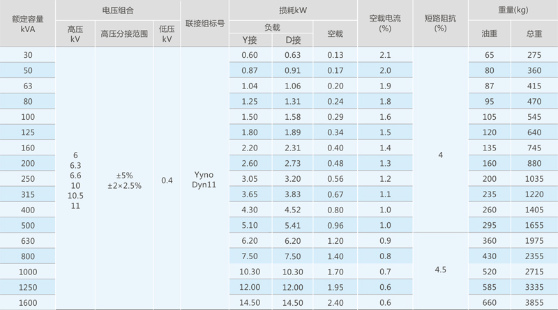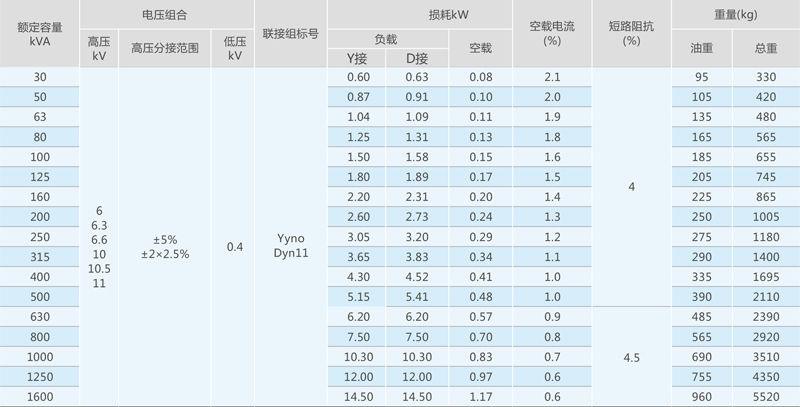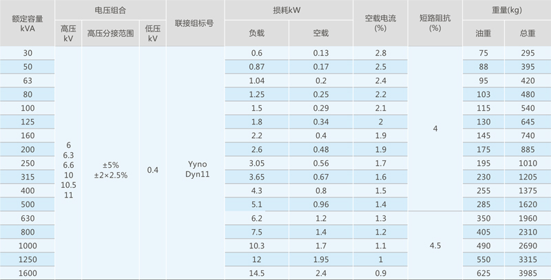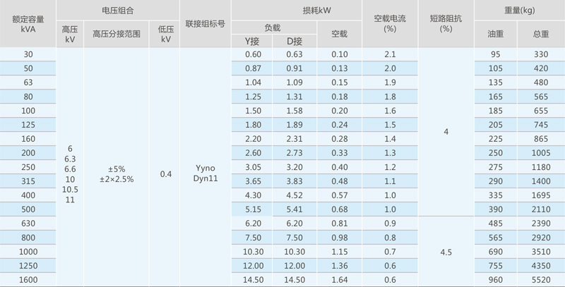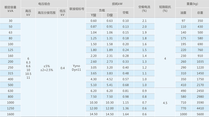 S11型6~10kV双绕组无励磁调压油浸式配电变压器