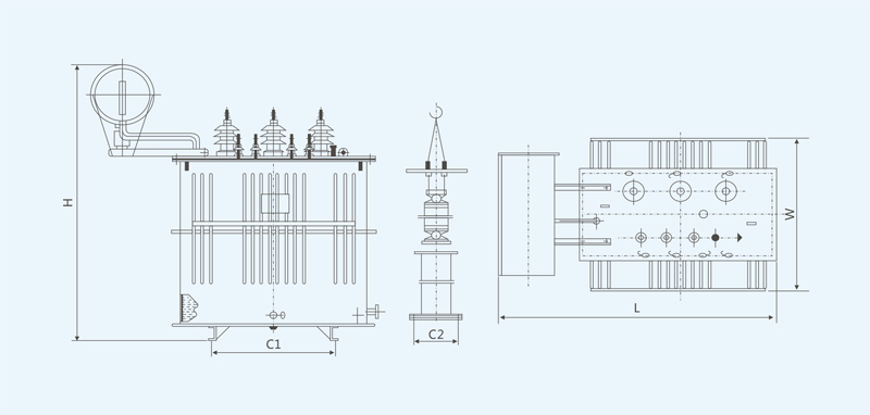 油箱采用桶式或罩式的型式,散热元件采用波纹片或片式散热器等组件。