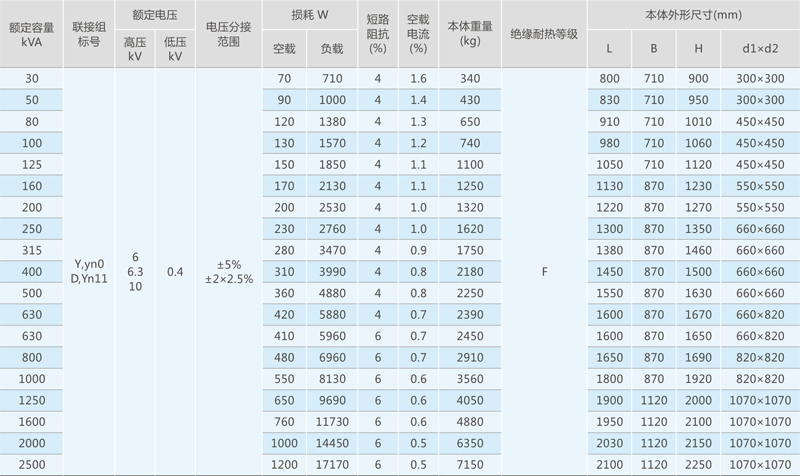 2.电压等级:一次侧电压:10kV 二次侧电压:0.4kV