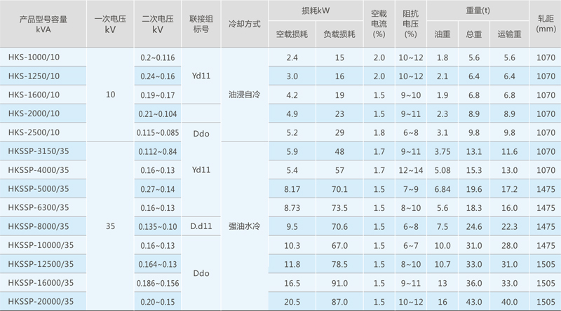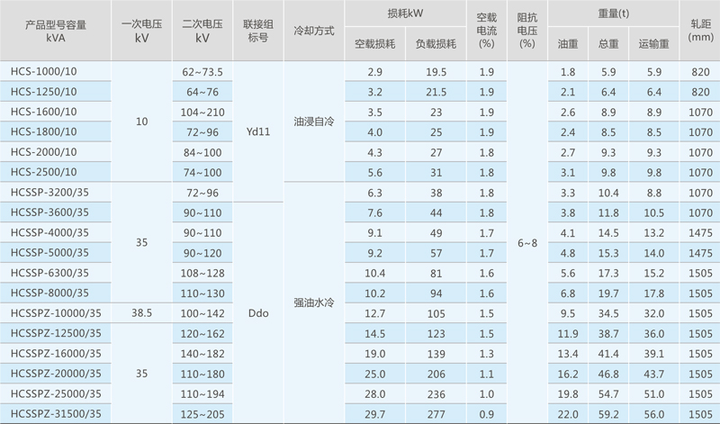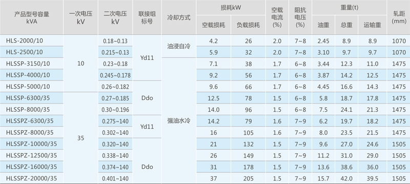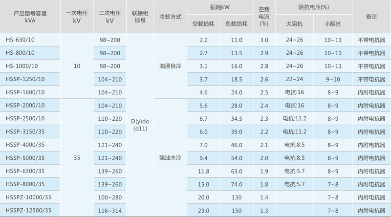 注:1. 容量5000~8000千伏安为无励磁电动调压,容量10000千伏以上以上有载调压; 2. 19级有载调压(前5级)恒功率输出、后14级恒电流输出。