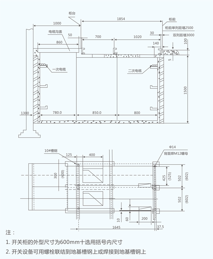 开关柜的安装地基见图12、图13.