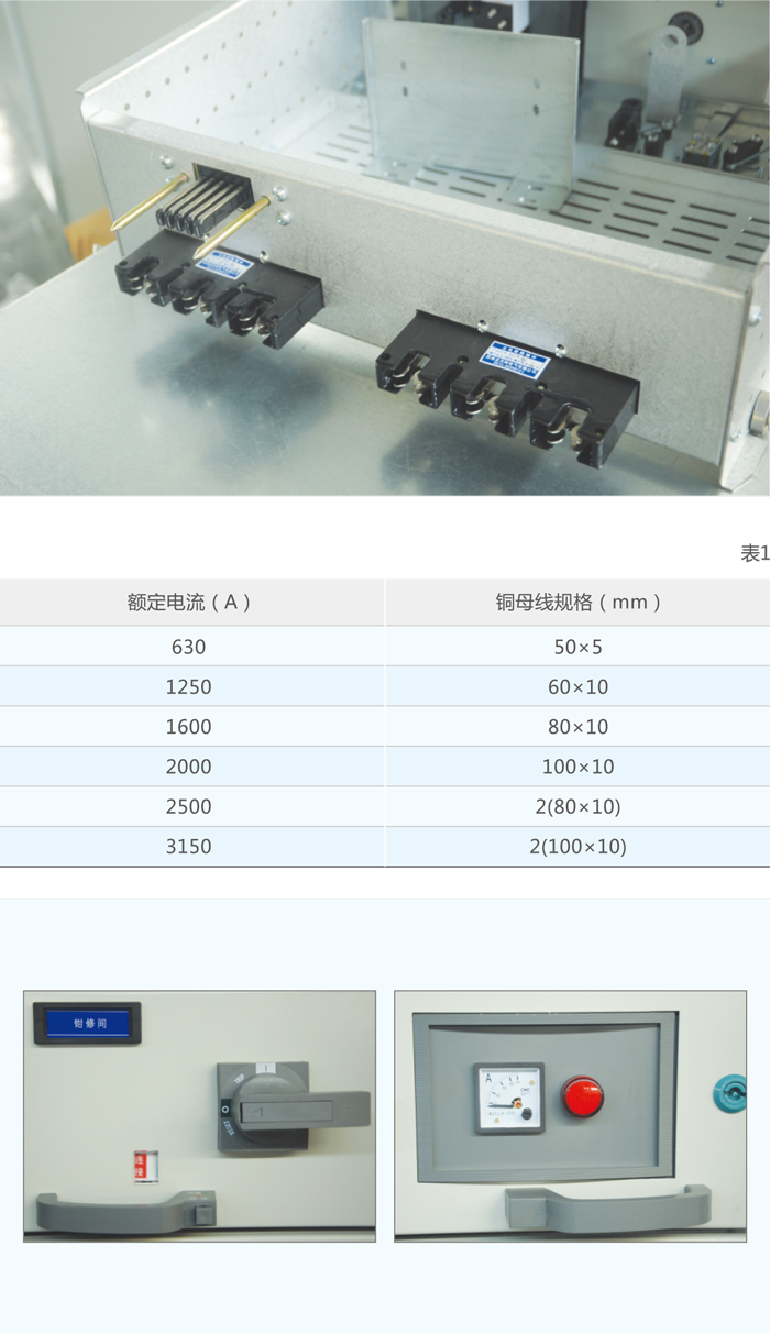 3)三相水平母线采用铜母线,机械强度高、散热性好。开关设备水平线铜母线排选用(见表1)